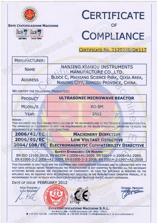 先歐超聲波微波產(chǎn)品通過(guò)歐盟電氣安全CE認(rèn)證